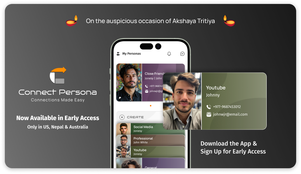 On the auspicious occasion of Akshaya Tritiya, a day symbolizing prosperity and new beginnings, ankaEK proudly unveils Connect Persona—a revolutionary platform transforming how individuals and businesses share and manage contact information. Now available in Early Access, Connect Persona empowers individuals, professionals, and businesses to seamlessly create and exchange dynamic, personalized contact cards, track shared details, and build stronger connections across personal and professional networks.